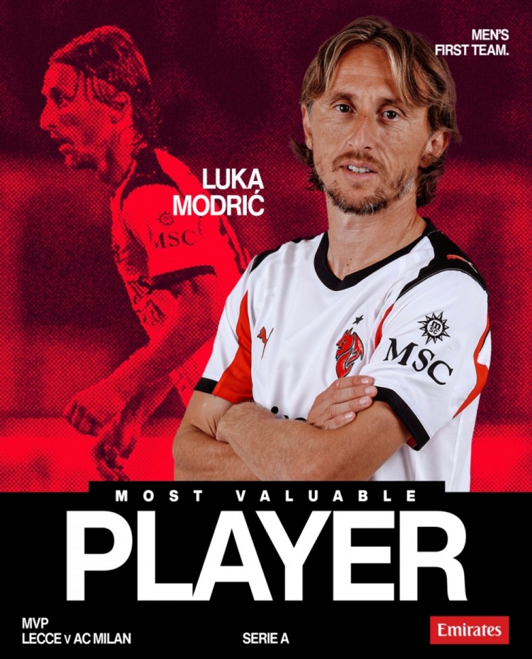 8月30日意甲联赛,AC米兰2-0战胜莱切队。莫德里奇本场表现抢眼,送出关键助攻帮助奇克破门,赛后被官方评选为本场队内最佳球员。...