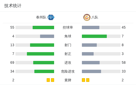 第43分钟,黄紫昌造点,随后操刀点射扳平比分,八队1-1泰州队